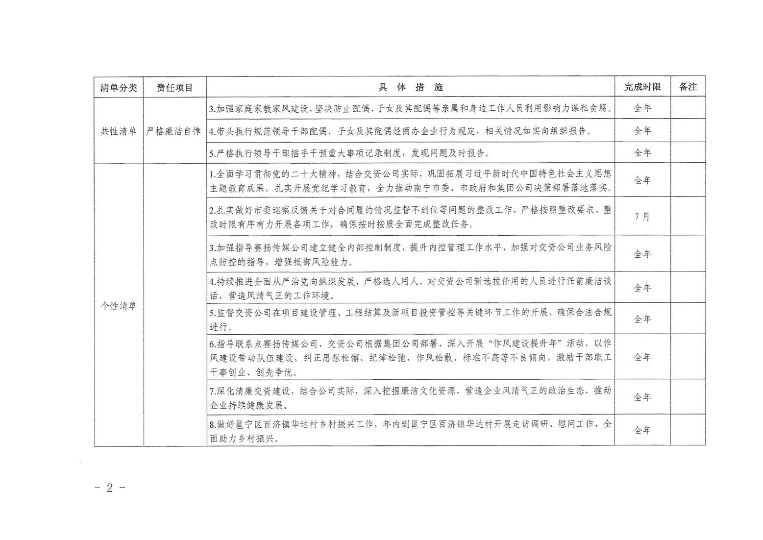 領(lǐng)導(dǎo)班子其他成員2024年度黨風廉政建設(shè)“一崗雙責”清單(七)