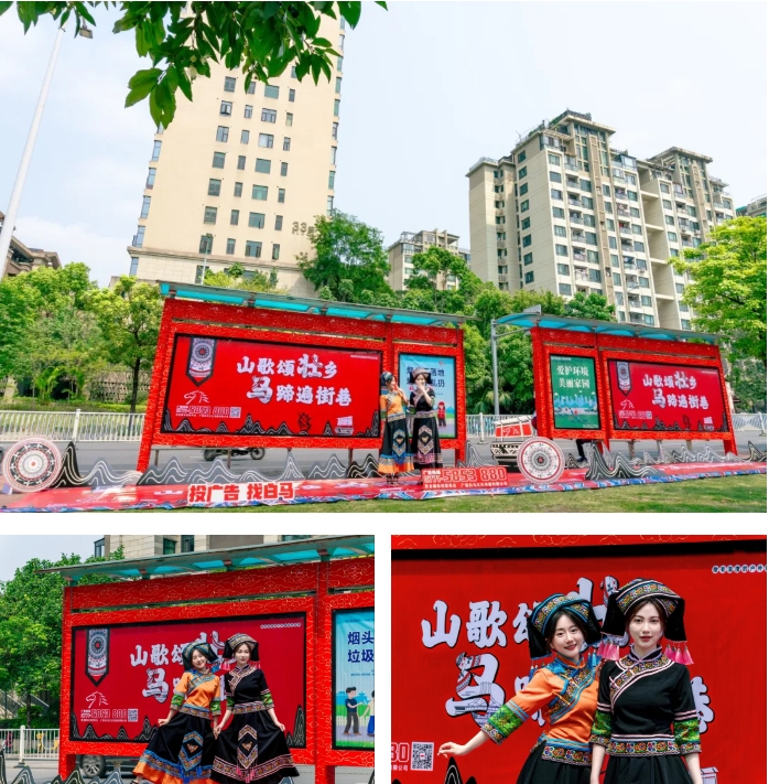三月三,穿傳統(tǒng)服飾過節(jié)必不可少。瞧,公交候車亭也穿上了節(jié)日的盛裝,鮮艷的色彩、精美的圖案,濃濃的民族風(fēng)情,為城市增添了一道亮麗的風(fēng)景,營造了濃厚的節(jié)日氛圍。圖為賽揚傳媒公司員工身著傳統(tǒng)服飾在公交候車亭旁合影。