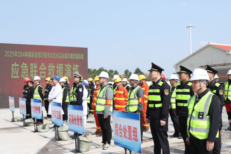 為全面提升林橫高速對服務(wù)區(qū)?;愤\(yùn)輸泄漏突發(fā)事故的應(yīng)急處置能力,加強(qiáng)“一路多方”各部門間的協(xié)同配合,保障過往司乘生命財(cái)產(chǎn)安全,3月18日,南寧交投集團(tuán)下屬南寧高速公司聯(lián)合賓陽縣應(yīng)急局、生態(tài)局、交警、消防救援大隊(duì)、衛(wèi)生局及區(qū)執(zhí)法局二支隊(duì)四大隊(duì)、六大隊(duì)等單位,在林橫高速鄒圩服務(wù)區(qū)開展?;愤\(yùn)輸泄漏突發(fā)事故應(yīng)急聯(lián)合救援演練。