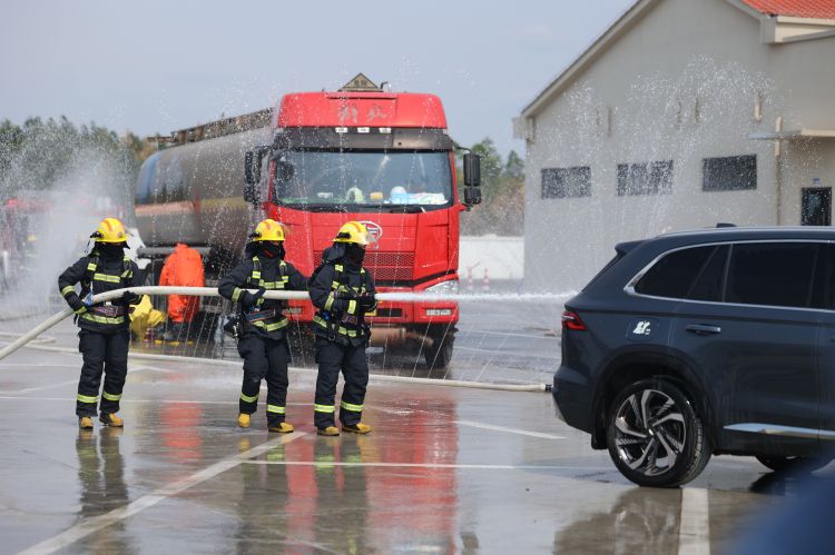 上午10時(shí)30分,演練正式開始,模擬場景為一輛載有危化品運(yùn)輸車在服務(wù)區(qū)發(fā)生泄漏。服務(wù)區(qū)工作人員發(fā)現(xiàn)險(xiǎn)情后,立即啟動?;沸孤?yīng)急預(yù)案,同時(shí)向高速交警、消防、醫(yī)療及環(huán)保等部門上報(bào)信息,并組織服務(wù)區(qū)工作人員封鎖現(xiàn)場、疏散周邊車輛及人員。