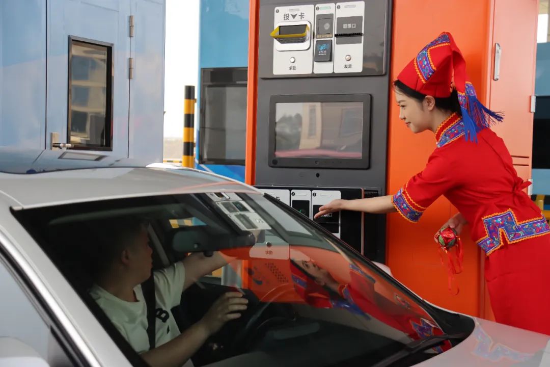 在上橫收費總站,當班人員身穿特色民族服裝,化身“阿哥”“阿妹”,以嶄新靚麗形象迎接廣大司乘,以傾心的微笑開展文明服務,將民族特色與收費窗口服務相融合,成為高速路上一道靚麗風景線。